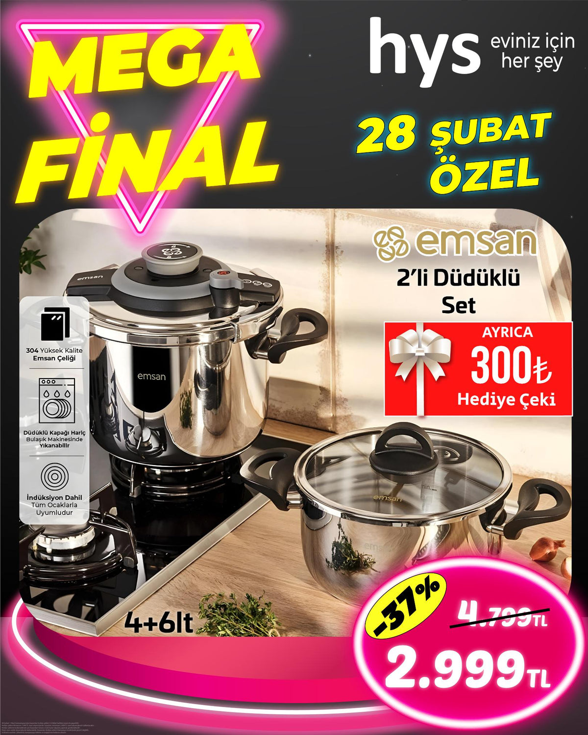 • Ürün: Emsan 2’li Düdüklü Tencere Seti (4L + 6L).