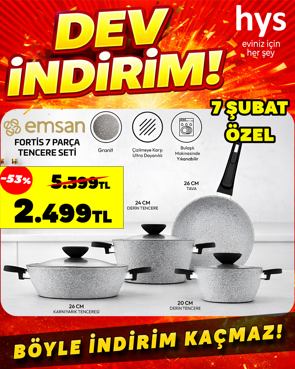 Mutfağınızın Yeni Yıldızı: Emsan Fortis 7 Parça Granit Tencere Seti