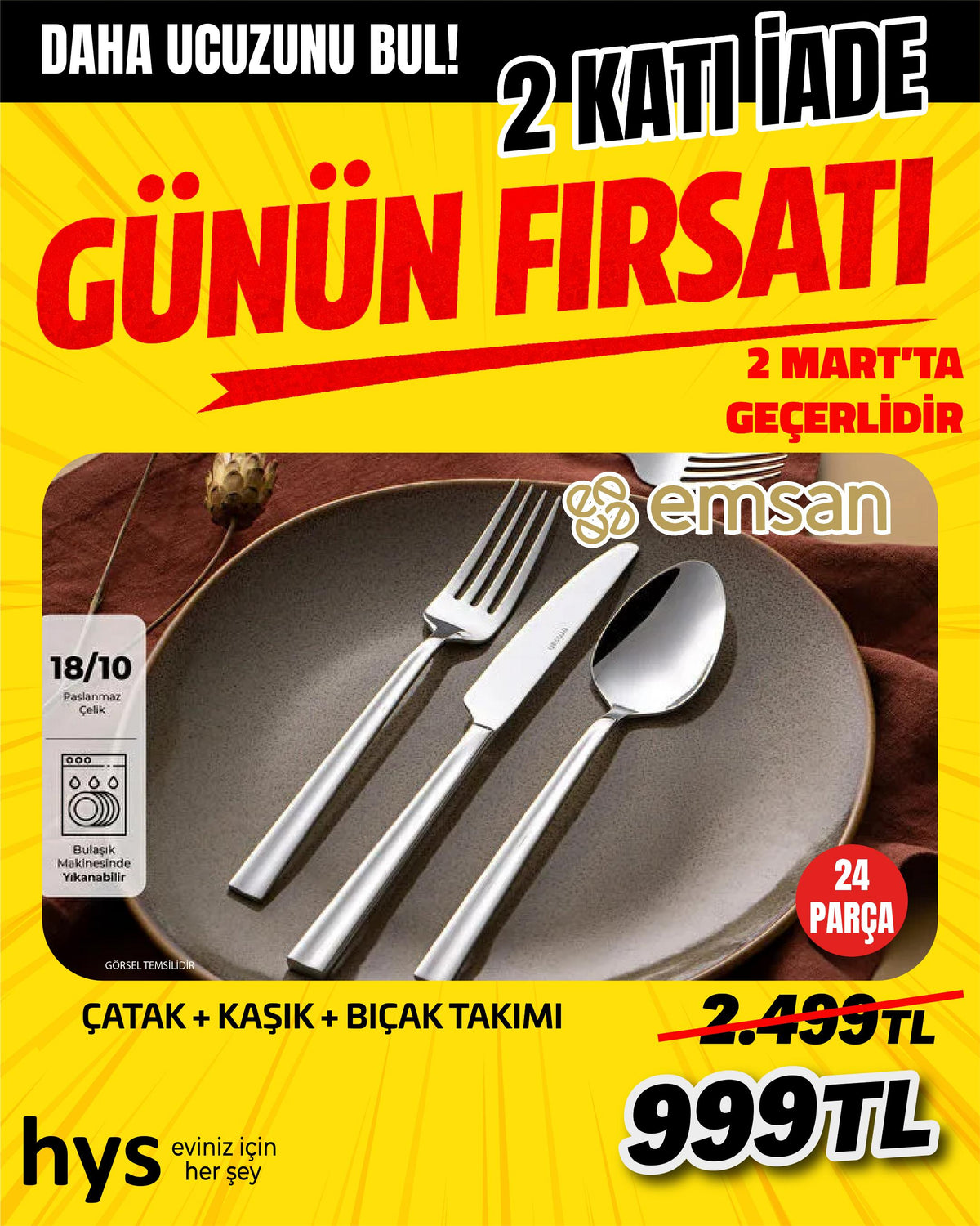 Emsan 24 Parça Çatal Kaşık Bıçak Seti